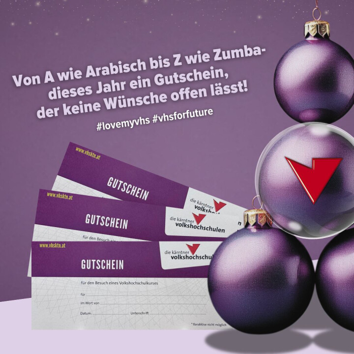 Ihren Wertgutschein in der gewünschten Höhe können Sie direkt in jeder Kärntner Volkshochschule erwerben oder ganz bequem per Email bestellen.